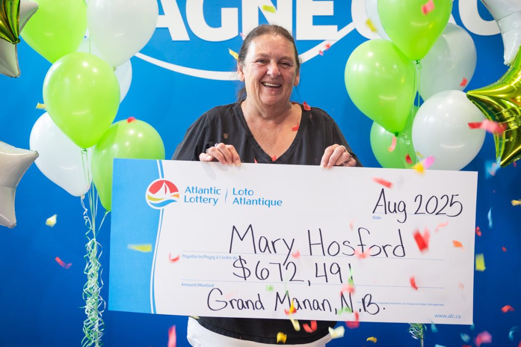 Mary Hosford of Grand Manan, N.B. is $672,491 richer after winning the Mega Jackpot on Firework Fortune Frenzy, a progressive jackpot Instant Win game offered on alc.ca.